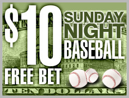 Our Sunday Night $10 Free Bet offers a chance to win up to $100.00 every week during the MLB regular season.