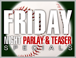 Friday Night Parlay and Teaser Special Bet all your 3 team, 10 point teasers at half price (from -130 to -115) and bet all your parlays at maximized odds. Special parlay payouts every Friday night between 6:00PM and 9:00PM ET.